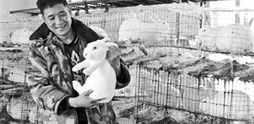 鐘軍和他的獺兔。 3月10日,位于海晏縣三角城鎮(zhèn)三聯村的一處獺兔養(yǎng)殖場,負責人鐘軍正清掃著兔棚。鐘軍說:“只要肯干,就不愁沒錢花,獺兔不光肉能賣錢,這兔皮更值錢啊!&