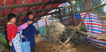 四川洪雅縣余坪鎮(zhèn)蒙川野豬養(yǎng)殖場目前正是熱鬧一幕,隨著吆喝聲場主羅倫春麻利地把紅苕投喂給圈內養(yǎng)殖的野豬,只見一頭頭壯實的野豬搶吃得正歡,周圍圈舍內的野豬不時趴在圈沿