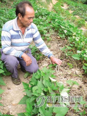 近日,老彭帶著記者來到了當時野豬出現(xiàn)的菜地。記者看到,種有番薯和木薯的菜地有很多野豬的蹄子印,比家養(yǎng)的豬蹄子印要大。隨后,老彭和記者又來到東邊大約100米的地方,這里靠近恩平廣播電視大學,周圍居民在這里種植了很多蔬菜和木瓜,狀況和前面的菜地一樣,留下了很多被野豬糟蹋的證據(jù),菜被踩得亂七八糟。老彭說,自從上次那只野豬被狗趕跑后,就再沒看見野豬的影子。