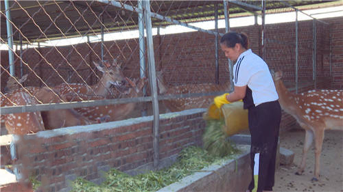 為了保證梅花鹿的質(zhì)量,李艷娟采取原生態(tài)喂養(yǎng)的方式,喂養(yǎng)玉米稈、牧草等。同時(shí),她還專門聘請了村里兩名貧困群眾,負(fù)責(zé)照料這群梅花鹿。
