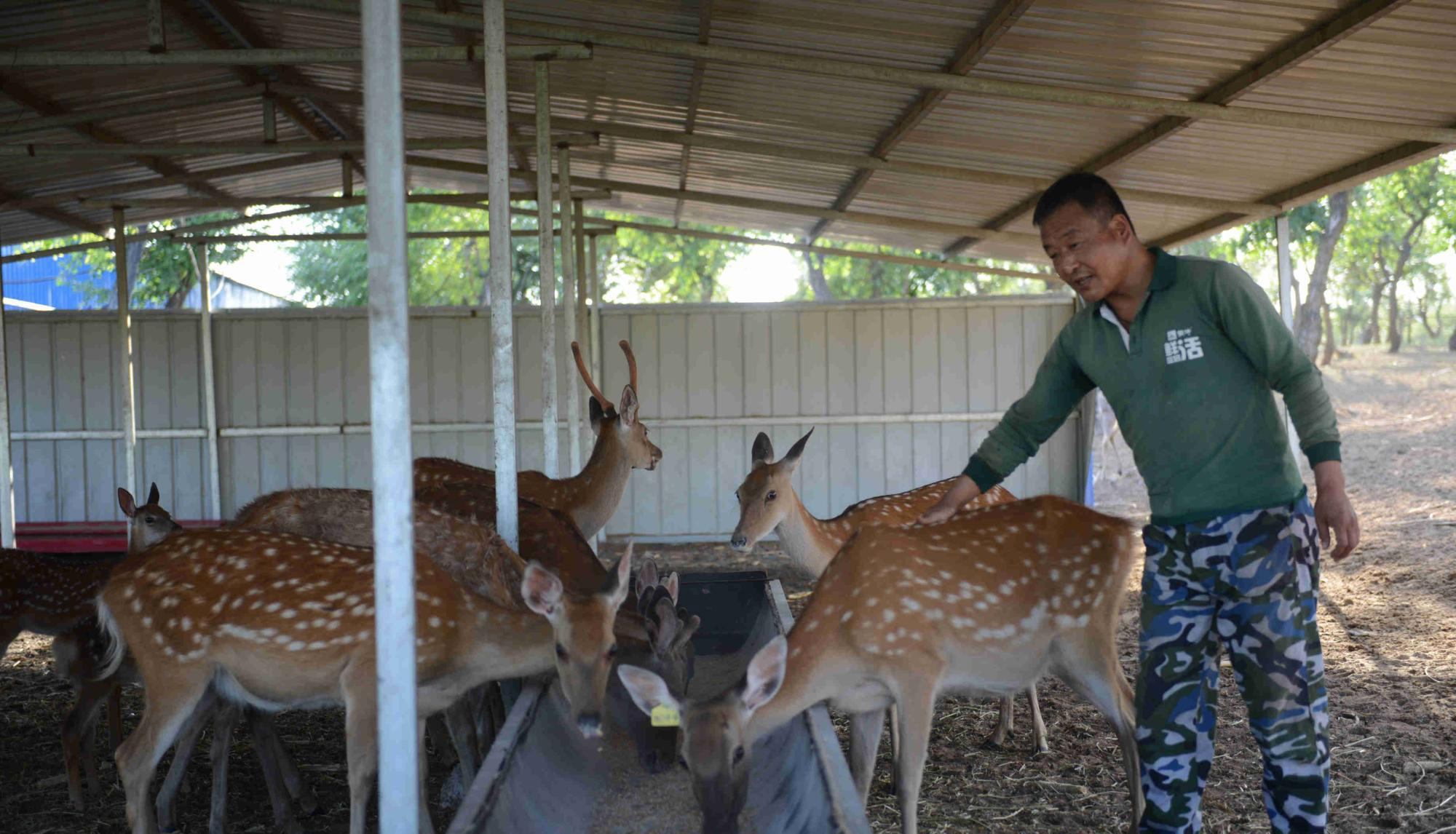 2015年,當(dāng)?shù)卮迕襦w鎖成牽頭和其他5個村民在林場承包下5000畝林,成立合作社,探索發(fā)展林下經(jīng)濟(jì)。起先只養(yǎng)了30多頭鹿試水。由于純天然綠色散養(yǎng),合作社的鹿產(chǎn)品品質(zhì)、價格都遠(yuǎn)高于市場。“鹿渾身都是寶,鹿茸、鹿血、鹿筋等都具有極高的藥用價值。市場上的鹿茸10塊錢一克,我的鹿茸一克能賣到20塊錢,一頭鹿一年能產(chǎn)鹿茸2公斤多。很多人慕名而來,都不夠賣。”鄔鎖成說。