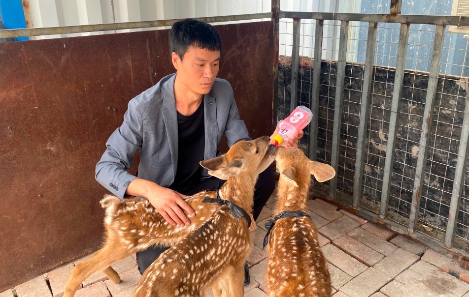 沿著309國(guó)道,記者來(lái)到了位于神頭鄉(xiāng)前寬嶂村的恒茂梅花鹿養(yǎng)殖場(chǎng),一群色澤斑斕的梅花鹿圍欄而聚、活潑可愛(ài),溫馴又稍帶警惕的模樣很是討人喜歡。“奶爸”任志方正在給剛出生的小鹿崽兒們進(jìn)行人工喂食,吃飽喝足后的它們?cè)诼股崂镉迫坏乇寂?、嬉戲?ldquo;呦呦”的鹿鳴聲成為了養(yǎng)殖場(chǎng)中一首獨(dú)特的音樂(lè)。