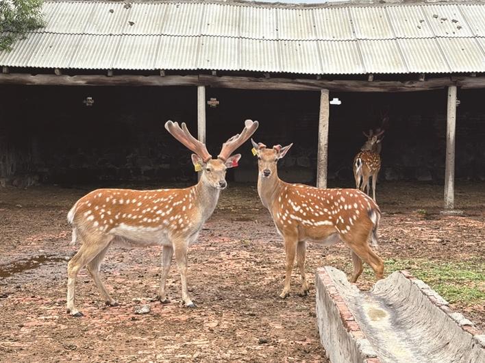 經(jīng)過(guò)數(shù)十年的實(shí)踐和摸索,鄧飛云逐漸探索出了一套養(yǎng)殖梅花鹿的實(shí)用技術(shù)。梅花鹿是復(fù)胃的草食性動(dòng)物,各種多汁飼料都可飼喂,另外再適當(dāng)補(bǔ)充以谷物、豆類等精飼料和礦物質(zhì)飼料。“相較于牛羊養(yǎng)殖,梅花鹿是雜食性動(dòng)物,飼料成本也比較低。平時(shí)主要喂養(yǎng)秸稈、稻草等粗飼料,為了保證鹿茸的高質(zhì)量,還需要適量添加以豆粕、玉米為主的青飼料。”鄧飛云介紹。