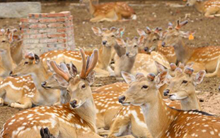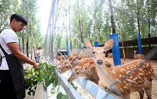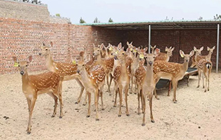鹿鼎山萬畝梅花鹿繁育基地坐落在山東省臨沂市蘭陵縣下村鄉(xiāng)的一個(gè)山坡上,風(fēng)景優(yōu)美、郁郁蔥蔥的山林環(huán)繞。走進(jìn)基地,一排排整齊的鹿舍里,一群群俏皮可愛的小鹿有的在那活蹦
