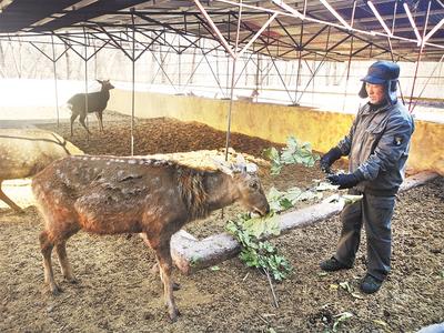 在秦皇島鹿兒堡梅花鹿生態(tài)文化園,工作人員在喂梅花鹿吃桲欏葉。 河北日報記者師源攝 在秦皇島鹿兒堡食品有限公司,工作人員將速凍好的鹿肉餡水餃裝袋、封袋。 河北日報通訊員