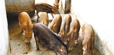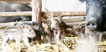 6只小豬身上都有土黃色的條紋 讀者溫先生來電稱:他姐姐家中的母豬生下了6只小豬崽兒,每一只的身上都有花紋,可能是野豬的后代。 昨日,記者來到位于遼陽縣吉洞粉城村,在