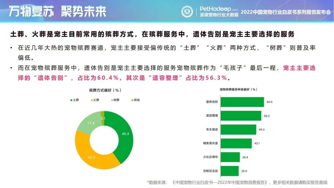 我國的寵物殯葬行業(yè)近年來發(fā)展火熱,但仍處于初期階段,在今年的報告中,我們也特別加入了對寵物殯葬賽道的分析數(shù)據(jù)。