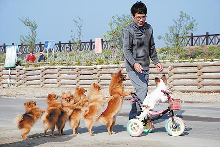 6只狗表演搭肩接龍賺車(chē)馬費(fèi)(圖文)