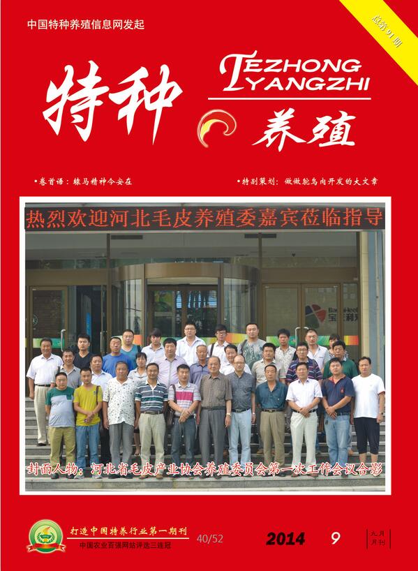 《特種養(yǎng)殖》由中國特種養(yǎng)殖信息網(wǎng)發(fā)起,主要探討業(yè)界重點、難點、熱點,融新聞性、實用性、可讀性為一體,是企業(yè)家、科研人員、養(yǎng)殖戶的得力助手,企業(yè)展示的理想舞臺。刊物自2005年創(chuàng)刊至今已出版120余期,經(jīng)過三次改版,由原來的32開改為國際大16開,2019年進行第四次改版,全部改為彩頁銅版紙印刷,并新增合作企業(yè)訪談欄目,增強了可讀性和互動性。中國特種養(yǎng)殖信息網(wǎng)(brianjohnpiccolo.com )有32個常設欄目和16個專業(yè)品種頻道,發(fā)展成本行業(yè)中的強勢網(wǎng)站,2018年進行第五次改版,改版后與微信公眾號“特種養(yǎng)殖”相輔相成,更好地為養(yǎng)殖戶及養(yǎng)殖企業(yè)提供信息。特養(yǎng)行業(yè)交流博覽會歷經(jīng)10余年,已經(jīng)成為行業(yè)交流的大平臺??铩⒕W(wǎng)站、官微、行業(yè)會議四位一體的宣傳模式更加鮮明。