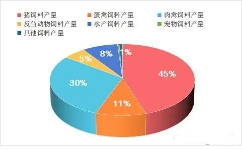 按品種劃分:豬飼料產(chǎn)量13597.5萬噸,增長4%;蛋禽飼料產(chǎn)量3210.9萬噸,下降0.6%;肉禽飼料產(chǎn)量8925.4萬噸,增長0.2%;反芻動物飼料產(chǎn)量1616.8萬噸,增長9.2%;水產(chǎn)飼料產(chǎn)量2525.7萬噸,增長10.2%;寵物飼料產(chǎn)量123.7萬噸,增長9.5%;其他飼料產(chǎn)量223.3萬噸,下降7.2%。