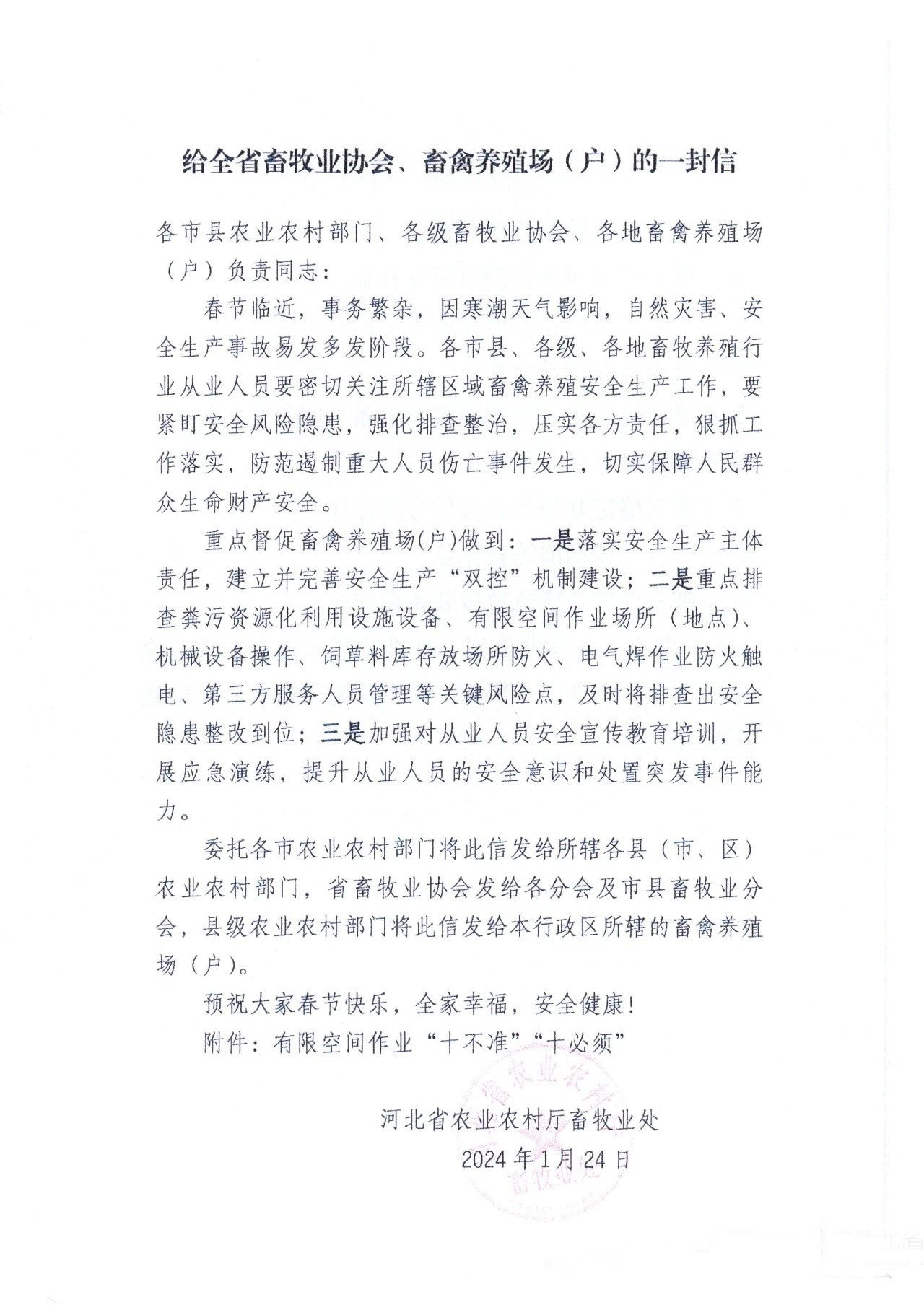 河北省農(nóng)業(yè)農(nóng)村廳給全省畜牧行業(yè)畜禽養(yǎng)殖場(戶)的一封信