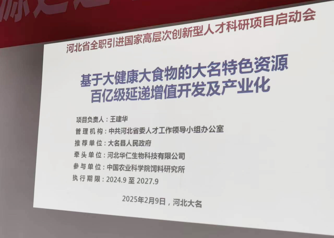 2025年2月9日,河北省全職引進(jìn)國(guó)家高層次創(chuàng)新型科技人才科研項(xiàng)目“基于大健康食物的大名特色資源百億級(jí)延遞增值開發(fā)及產(chǎn)業(yè)化”啟動(dòng)儀式在河北華仁生物科技有限公司(河北省毛皮產(chǎn)業(yè)協(xié)會(huì)副會(huì)長(zhǎng)單位)舉辦。