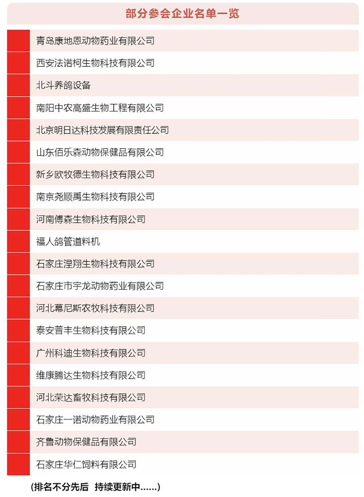 參會企業(yè)名單 | 2025“山河四省”鴿業(yè)發(fā)展大會暨第十屆肉鴿交流研討會