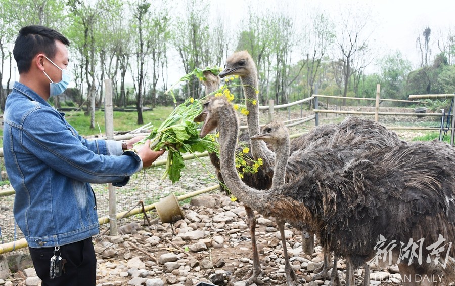 3月21日,江永縣源口瑤族鄉(xiāng)上村,特種養(yǎng)殖場的工人在喂養(yǎng)鴕鳥。近年,該縣引導農(nóng)民大力發(fā)展特色畜禽養(yǎng)殖,開辟增收新路徑。目前全縣共發(fā)展肉牛、山羊、肉鵝、鴿子、鴕鳥等20多