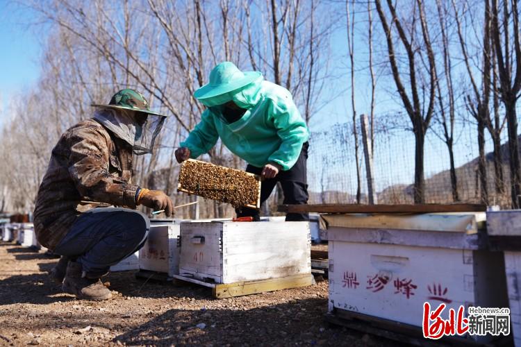 2022年3月1日,在河北省遵化市娘娘莊鄉(xiāng)鼎珍養(yǎng)蜂專業(yè)合作社內(nèi),蜂農(nóng)正在檢查蜂群生長(zhǎng)情況。河北省遵化市娘娘莊鄉(xiāng)因地制宜,通過(guò)“合作社+農(nóng)戶”的模式,積極發(fā)展蜜蜂養(yǎng)殖,推動(dòng)生態(tài)產(chǎn)業(yè)健康發(fā)展,實(shí)現(xiàn)農(nóng)民增收致富。