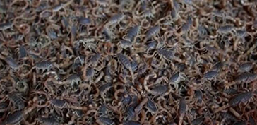 在河北省辛集市西陳位村螞蚱養(yǎng)殖基地,10個(gè)白色大篷整齊排開(kāi),養(yǎng)殖戶馬爭(zhēng)艷正在給螞蚱喂食?! ∥涷苿e名蝗蟲(chóng),不但可食用,還可以藥用。據(jù)了解,從4月到10月,每年能養(yǎng)4茬螞蚱,一