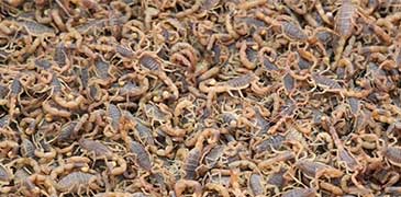 清晨6點,在河北省秦皇島市撫寧區(qū)大新寨鎮(zhèn)大石窟村,卓潤特種養(yǎng)殖合作社理事長楊東生推開藥蝎養(yǎng)殖棚的大門,溫?zé)岬臍庀A雜著黃粉蟲飼料的淡淡腥味撲面而來。溫濕度控制設(shè)備