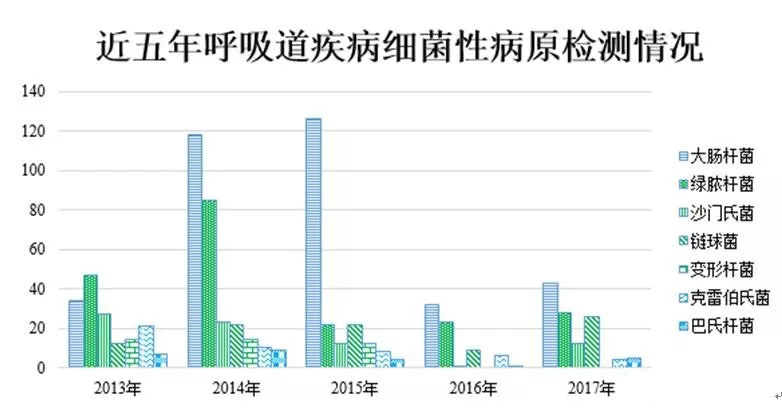 2013~2017年,水貂細菌性肺炎的主要病原以大腸桿菌、綠膿桿菌、鏈球菌、克雷伯氏菌、巴氏桿菌等條件性致病菌為主。