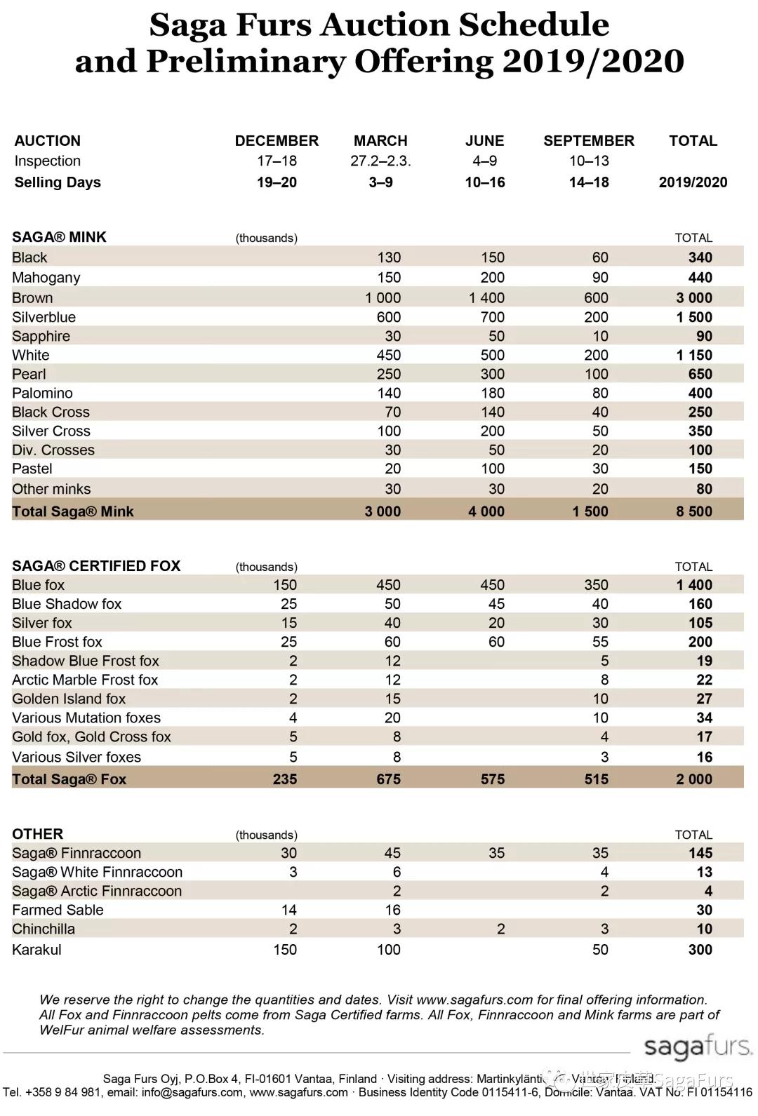 為了您更好地規(guī)劃下一年度拍賣(mài)會(huì)行程,世家皮草2019-2020拍賣(mài)年度的拍賣(mài)會(huì)日期和預(yù)計(jì)銷(xiāo)售數(shù)量現(xiàn)已新鮮出爐。