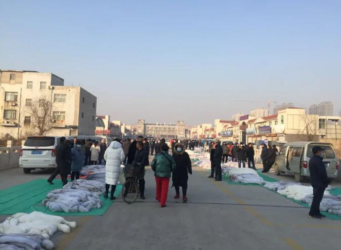 今天農(nóng)歷的臘月初四,尚村毛皮市場大集。進入臘月也到了冬天最冷的時候,這集相比上個集來的人要多一些,皮張上市量也有所增加。不過外地客商過來的不多,交易量不大。