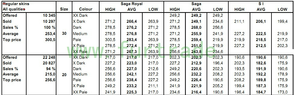 今天是芬蘭6月份拍賣會(huì)得第一天,500位來(lái)自土耳其、俄羅斯、意大利、香港和中國(guó)大陸的買(mǎi)家參加了拍賣會(huì)。65.000張世家級(jí)芬蘭銀狐皮完全售出,拍賣價(jià)格與三月相比,從穩(wěn)定逐漸