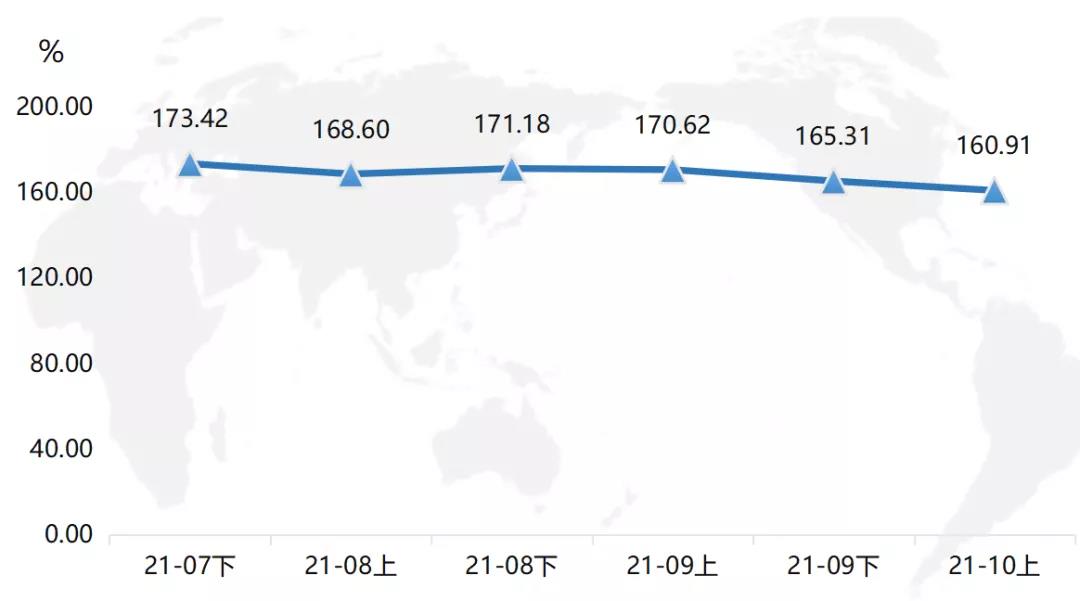 兔皮細分品類中,獺兔和家兔皮產(chǎn)品價格10月上半月均有所走低,其中家兔皮由于用作大衣產(chǎn)品內(nèi)膽掉毛,產(chǎn)品需求量降低,10月上半月價格指數(shù)明顯走低收報154.76點,環(huán)比跌幅為10.09%;獺兔皮產(chǎn)品價格指數(shù)10月上半月收報176.87點,環(huán)比下滑1.41%。