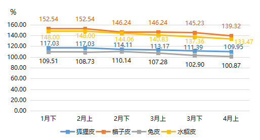 4月上半月,裘皮產(chǎn)品價格指數(shù)延續(xù)下滑態(tài)勢 !