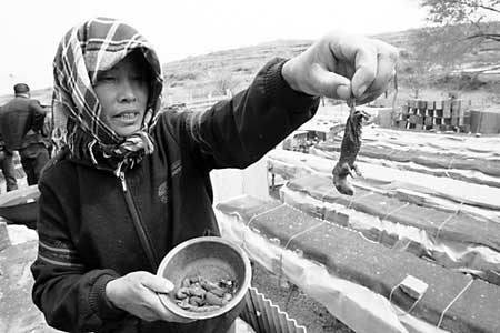 圖片說(shuō)明:養(yǎng)殖場(chǎng)的女主人向記者展示貂崽的尸體。