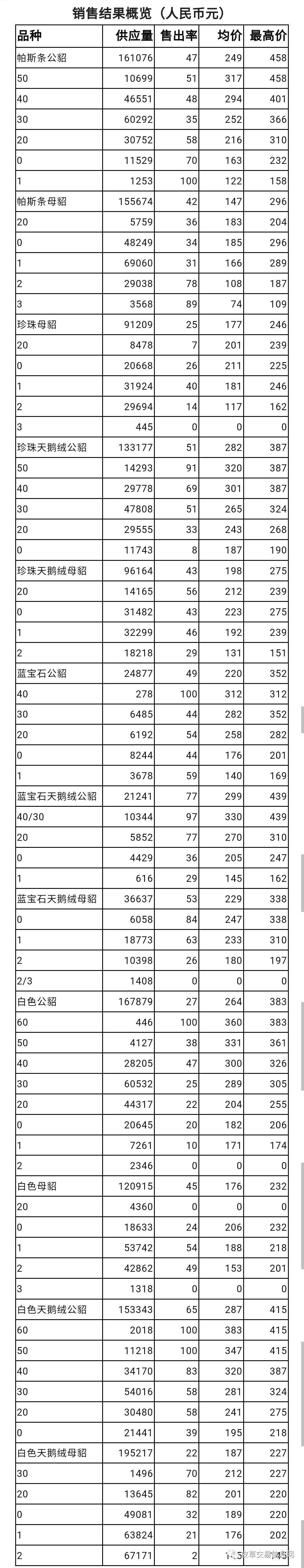 芬蘭6月線上拍賣會(huì)第二天拍賣的是帕斯條(淺啡)和珍珠貂,歐洲和北美帕斯條售出率接近50%。整體說來,珍珠貂的售出率達(dá)到了40%,珍珠天鵝絨公貂的售出率達(dá)到了55%。截止到14日,水貂的售出率已經(jīng)達(dá)到40%。中國昨日也相當(dāng)活躍,緊隨其后的是歐洲時(shí)裝業(yè)和韓國。