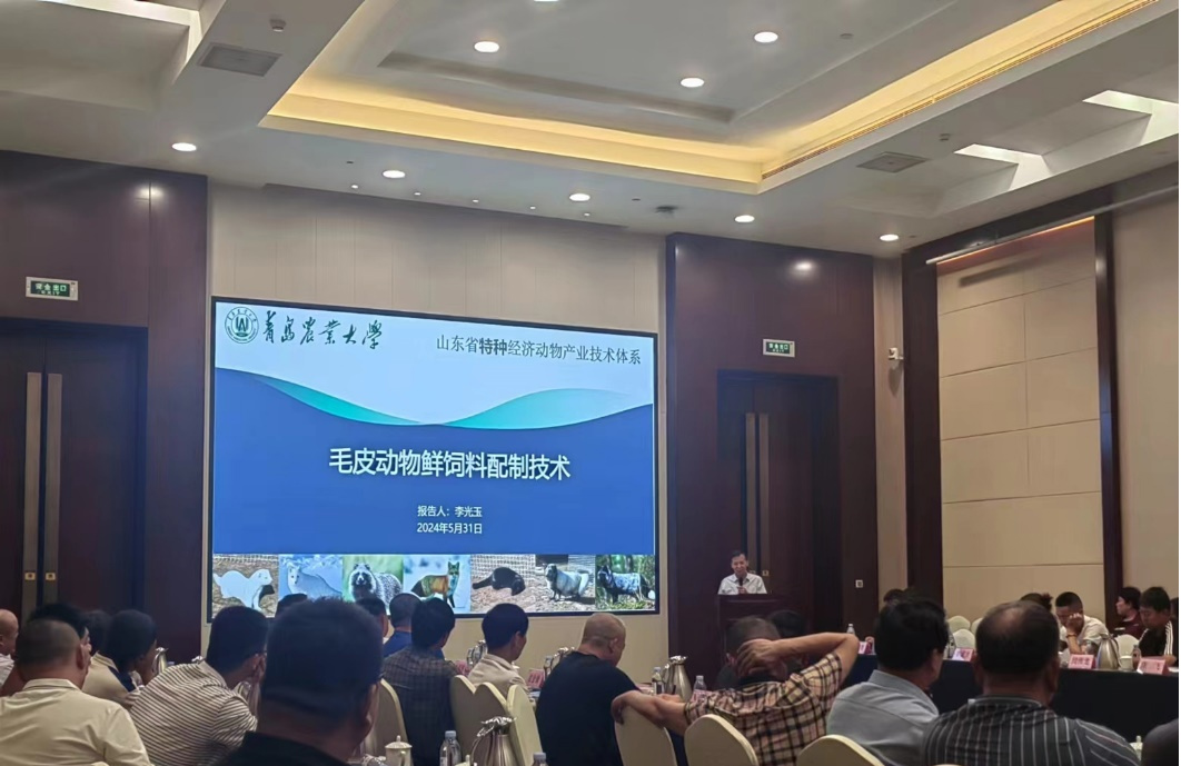 中國畜牧業(yè)協(xié)會毛皮動物分會會長、山東省特種經(jīng)濟動物產(chǎn)業(yè)技術(shù)體系首席科學家李光玉,以“毛皮動物鮮飼料配制技術(shù)”為題,就毛皮動物鮮料配制中的營養(yǎng)搭配及安全風險進行了詳細闡述。