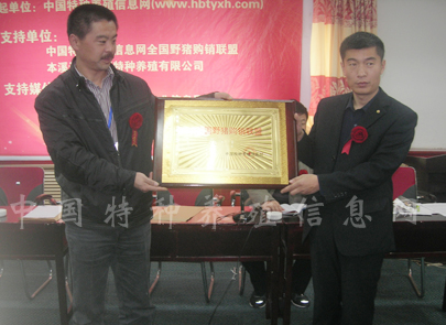 靳總給全國野豬購銷聯(lián)盟會(huì)長劉斌授牌