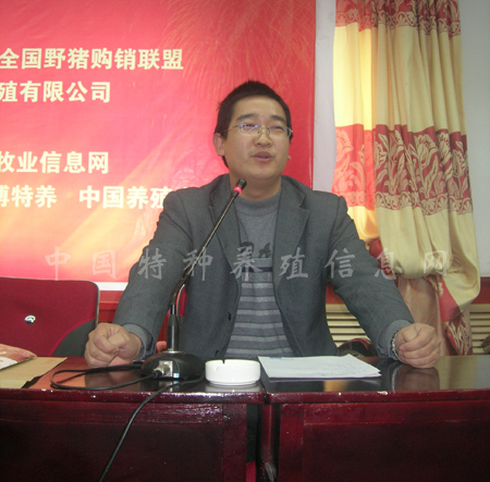 以“行業(yè)自醒,找準(zhǔn)定位,再圖發(fā)展”為主題。上午的會(huì)議由中國特種養(yǎng)殖信息網(wǎng)網(wǎng)站總監(jiān)靳國慶主持。會(huì)議首先宣布了網(wǎng)站“全國野豬購銷聯(lián)盟”的正式成立,靳國慶向與會(huì)代表介紹了聯(lián)盟成立的背景以及人員篩選的整個(gè)過程。同時(shí)靳國慶向聯(lián)盟會(huì)長劉斌授盟,并由會(huì)長劉斌和靳國慶共同向推選的各位副會(huì)長授牌和頒發(fā)證書。在穿插了英國永農(nóng)公司東北區(qū)崔團(tuán)總經(jīng)理“野豬綠色養(yǎng)殖”和北京華夏康源公司夏彪總經(jīng)理的“發(fā)酵床在野豬行業(yè)的應(yīng)用”專題講座后,靳國慶做了“樹立三個(gè)意識”的主題演講。他講到,作為特養(yǎng)行業(yè)的分支,野豬行業(yè)同仁應(yīng)該樹立“行業(yè)、責(zé)任、誠信”三種意識,同時(shí)提出“只有穩(wěn)定發(fā)展的行業(yè),才會(huì)出現(xiàn)眾多健康發(fā)展”的理念,對野豬行業(yè)的發(fā)展現(xiàn)狀和前景發(fā)表了自己的看法。