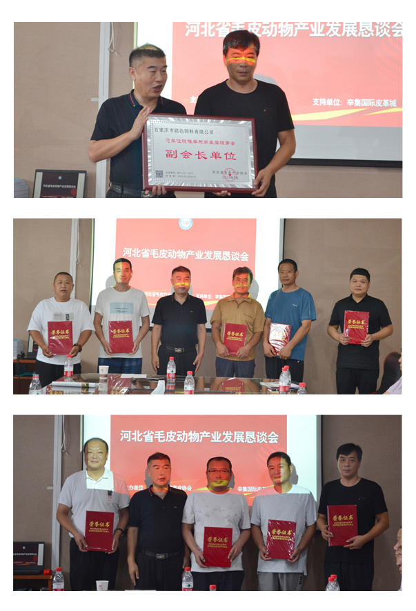 懇談會(huì)上,靳國(guó)慶為省協(xié)會(huì)顧問(wèn)、副會(huì)長(zhǎng)、會(huì)員頒發(fā)了牌匾和證書(shū)。本次會(huì)議得到了辛集國(guó)際皮革城的大力支持。