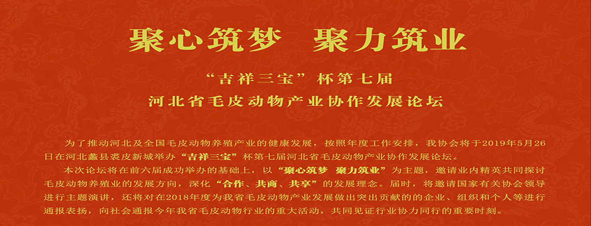 關(guān)于舉辦“吉祥三寶”杯第七屆河北省毛皮 動(dòng)物產(chǎn)業(yè)協(xié)作發(fā)展論壇的通知 一、會議組織 指導(dǎo)單位:中國皮革協(xié)會 中國畜產(chǎn)品流通協(xié)會 主辦單位:河