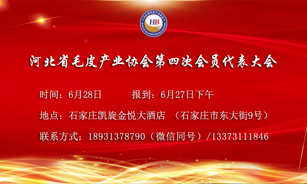 2019年6月28日,河北省毛皮產(chǎn)業(yè)協(xié)會第四次會員代表大會暨第四屆理事會第一次會議在河北石家莊市凱旋金悅酒店隆重舉行。在本次會議上河北省毛皮產(chǎn)業(yè)協(xié)會產(chǎn)生了新一屆理事