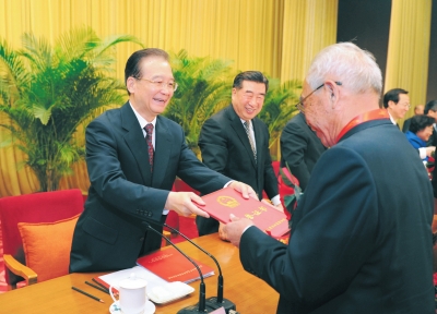 溫家寶為先進(jìn)單位和先進(jìn)個(gè)人代表頒獎(jiǎng) 新華社記者 謝環(huán)馳 攝