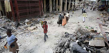 1月25日,在海地首都太子港,人們從房屋的廢墟旁經過。世界衛(wèi)生組織官員1月26日在太子港說,1月12日海地地震已造成11.3萬人喪生,19.6萬人受傷?! ?月26日,在海地首都太子港,一