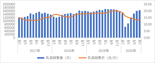 總的來看,7月份鴿產品消費端的市場表現(xiàn)不佳,銷量尚可,但價格低迷。生產端有擴產的現(xiàn)象,引種量和價格均明顯提升??紤]到后期飼料成本上漲,消費市場恢復緩慢,建議后期擴產的企業(yè)應將重點放到技術升級、成本控制和消費渠道建設中去。