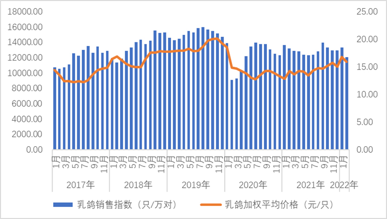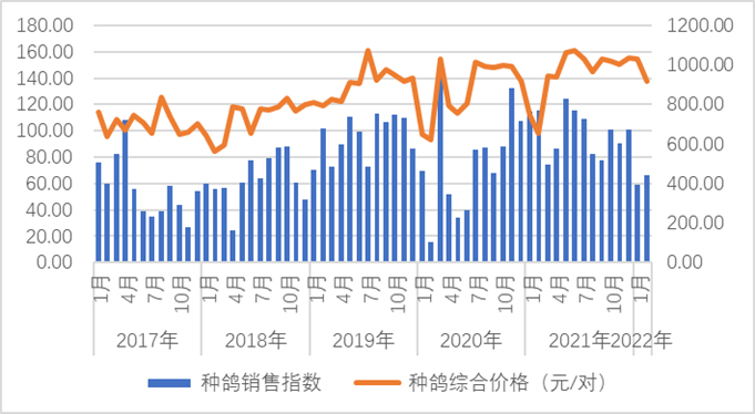 圖2、種鴿銷售指數(shù)與綜合價(jià)格