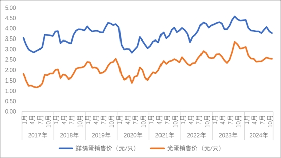 本期,監(jiān)測企業(yè)鴿蛋和光蛋平均價格分別為3.77元/枚和2.55元/枚,價格環(huán)比下跌2%和1%,均為一般性波動。