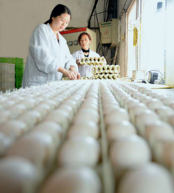 近日,位于河北省成安縣河北瑯昆鴿業(yè)有限公司員工分撿包裝鮮鴿蛋。