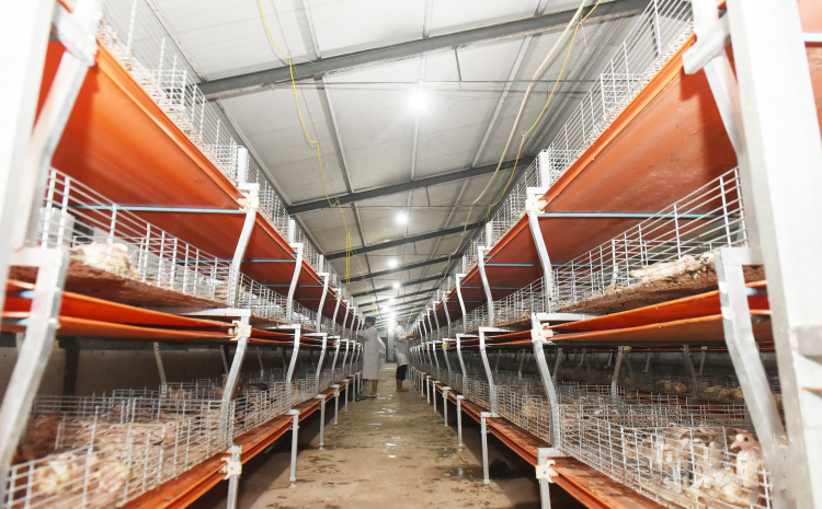 邯星農業(yè)科技有限公司員工在鴿舍內查看肉鴿長勢。