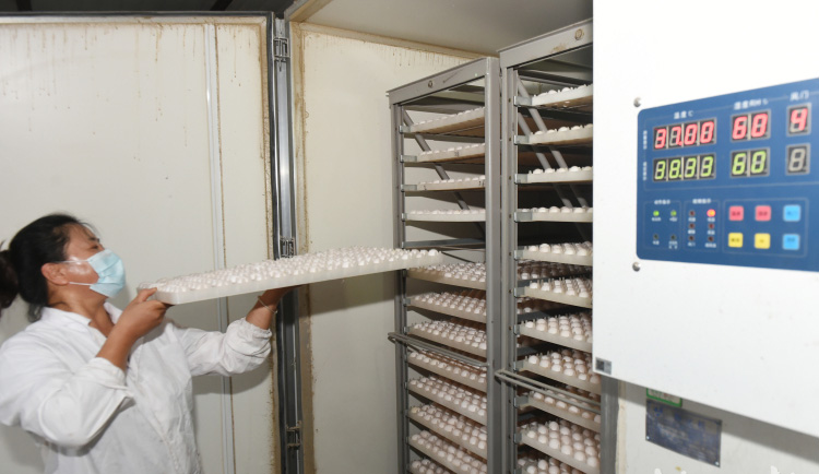 2021年7月20日,邯星農業(yè)科技有限公司的員工將鴿子蛋放入箱體式孵化機。