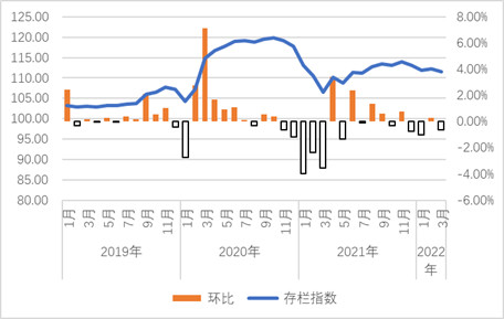 圖1 產(chǎn)鴿存欄指數(shù)(2017年1月存欄為基期100)與環(huán)比