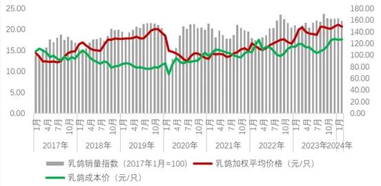 2024年1-2月,產(chǎn)能與乳鴿價(jià)格上漲
