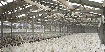 ▲7月2日,天明鴿業(yè)員工正在為肉鴿添加食料?!烀鼬潣I(yè)肉鴿培育基地一角?! 〗?jīng)過(guò)十多年的發(fā)展,河南省勞動(dòng)模范楚維向和他所創(chuàng)辦的天明鴿業(yè)成為我國(guó)肉鴿行業(yè)的知名企業(yè),企業(yè)年