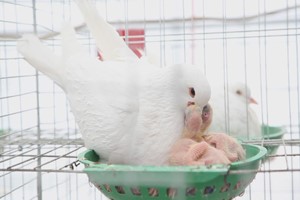 小乳鴿孵化出殼后種用白羽王鴿進(jìn)入育雛期,眾所周知鴿子屬于晚成鳥,剛剛出殼的小雛鴿,根本不能自己采食,需要親鴿分泌奶樣鴿乳,口對口喂養(yǎng)長大直到其作為商品出售的。在育雛期間公鴿和母鴿均會分泌鴿乳,共同照顧喂養(yǎng)乳鴿,為確保種鴿鴿乳分泌在此階段需加強車間管理,提供優(yōu)質(zhì)合理配比日糧,適當(dāng)補料增加日糧供給,同時補充維生素、礦物質(zhì)等,幫助親鴿營養(yǎng)的全面吸收,利于乳鴿的生長發(fā)育,因乳鴿出售標(biāo)準(zhǔn)不同,種鴿育雛期約3~4周。需特別注意的是:高產(chǎn)種鴿在乳鴿哺育2~3周左右后會再次進(jìn)行交配,繼而產(chǎn)下下一窩的鴿蛋,種鴿一邊孵蛋一邊哺育乳鴿,這樣的種鴿繁殖周期只有約40天左右時間。