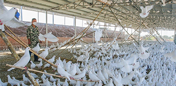 首先抓好“三降” 01降低溫度 鴿羽毛稠密,無(wú)汗腺,體內(nèi)熱量散發(fā)困難,因而高溫環(huán)境影響肉鴿的生長(zhǎng)?! ”仨毑扇∮行Т胧┻M(jìn)行降溫: 1、將房頂和南側(cè)墻涂