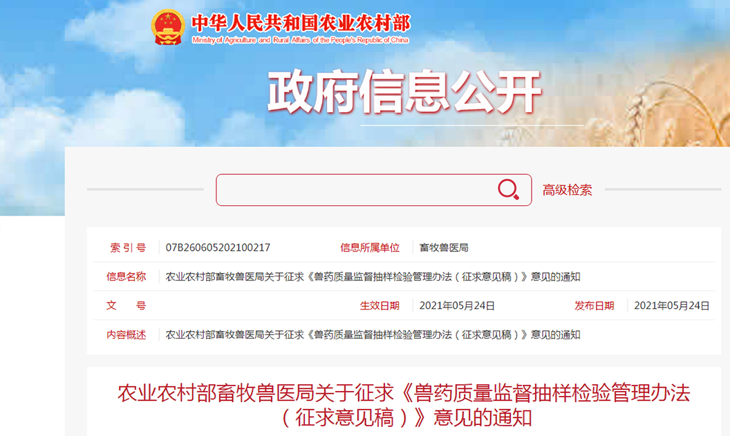 農(nóng)業(yè)農(nóng)村部 | 《獸藥質(zhì)量監(jiān)督抽樣檢驗(yàn)管理辦法(征求意見(jiàn)稿)》