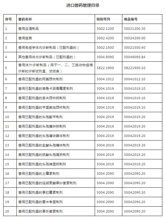 農(nóng)業(yè)農(nóng)村部 海關(guān)總署發(fā)布新版《進口獸藥管理目錄》